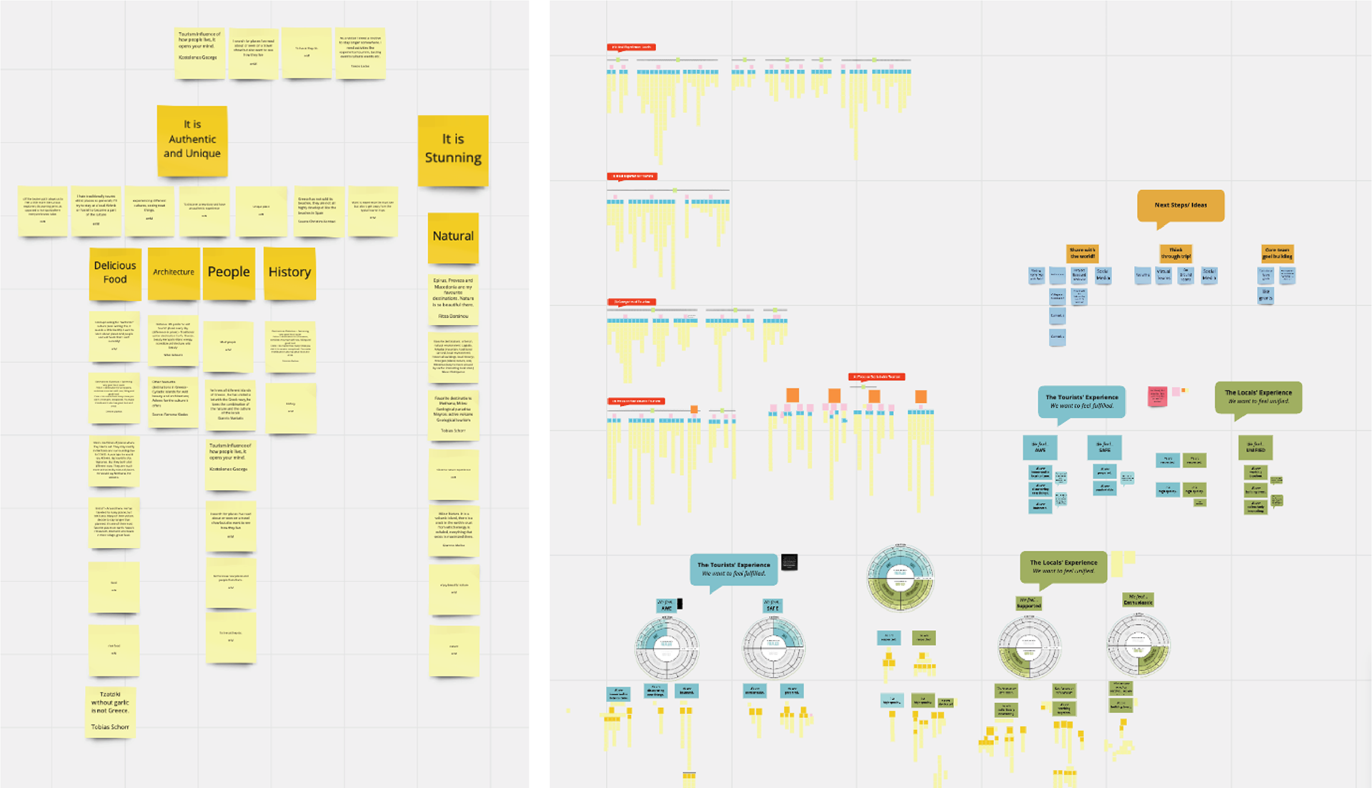 After developing a better understanding, we began primary research and contextual inquiry by planning, conducting and recording 20 hours of in-depth ethnographic interviews of Greek stakeholders. Interviewees included private citizens, business owners, and public servants. They helped us learn more about particular expectations, experiences, services, operations, processes, and concerns, as well as about attitudes, problems, needs, ideas, and the environment surrounding the subject of tourism.Phase 2: Definition (analysis and synthesis)
